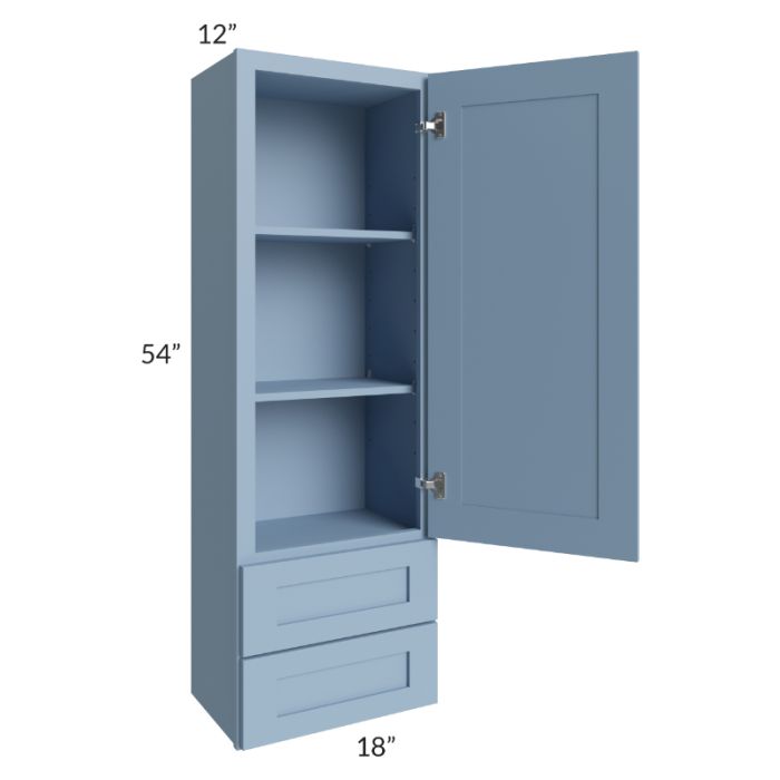 Description / Sky Blue Shaker 18x54 Wall Cabinet With Drawers
