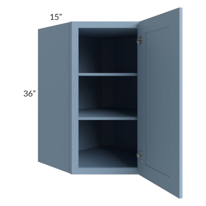 Description / Sky Blue Shaker 27x36x15 Wall Diagonal Corner Cabinet