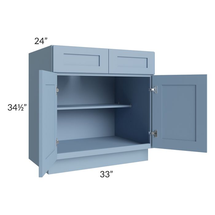 2 door base cabinet with 2 drawer and 1 shelf. There is no center stile on this cabinet.