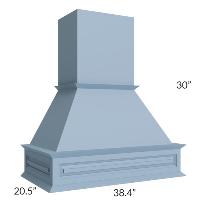 Wood range hood with no decorative rail. The top 30" is trim-able if needed. The hood is 38-3/8" at widest point of base. This is for an actual hood, not a hood cover and a separate liner and blower will be needed.