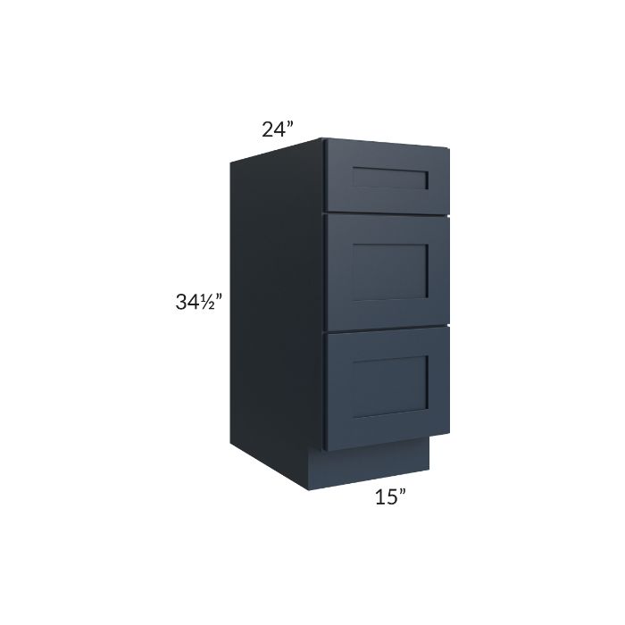 Description / Southport Blue Shaker 15" 3-Drawer Base Cabinet