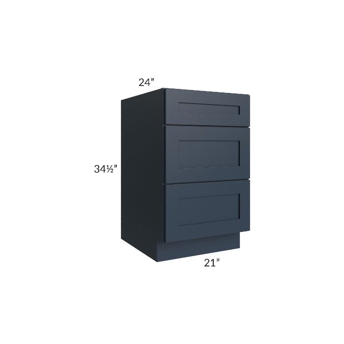 Description / Southport Blue Shaker 21" 3-Drawer Base Cabinet