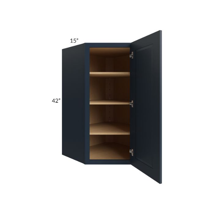 Description / Southport Blue Shaker 27x42 Wall Diagonal Corner Cabinet - Out of stock through June