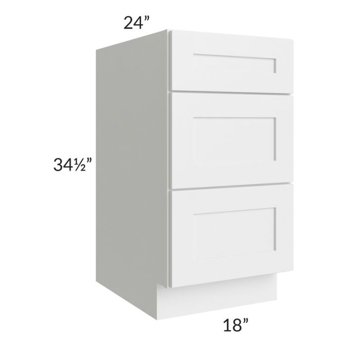 Description / Southport White Shaker 18" 3-Drawer Base Cabinet
