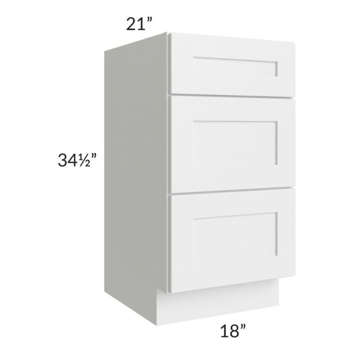 Southport White Shaker 18" Vanity 3-Drawer Base Cabinet