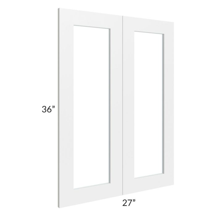 Glass doors for a wall cabinet that is 27" wide and 36" high. Frosted glass is included. The actual cabinet must be purchased separately.