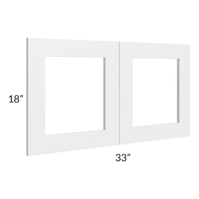 Glass door for a wall cabinet that is 33" wide and 18" high. Frosted glass is included. The actual cabinet must be purchased separately.