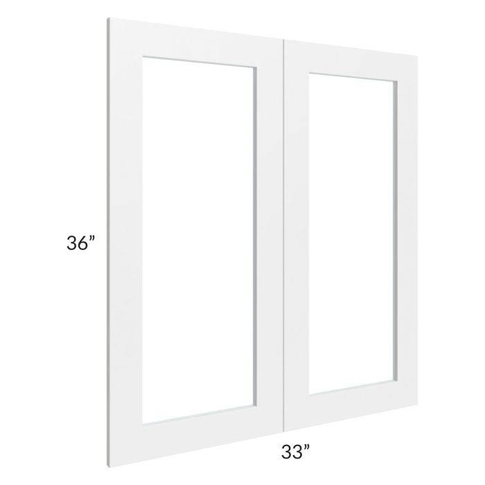 Glass doors for a wall cabinet that is 33" wide and 36" high. Frosted glass is included. The actual cabinet must be purchased separately.