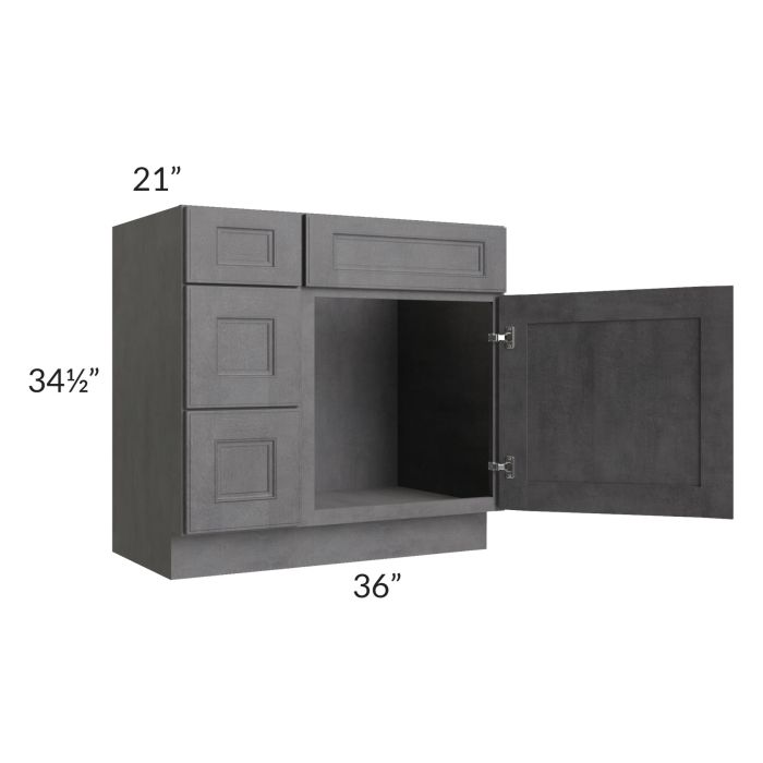 Stone Grey 36" Vanity Sink Base Cabinet (Drawers on Left)