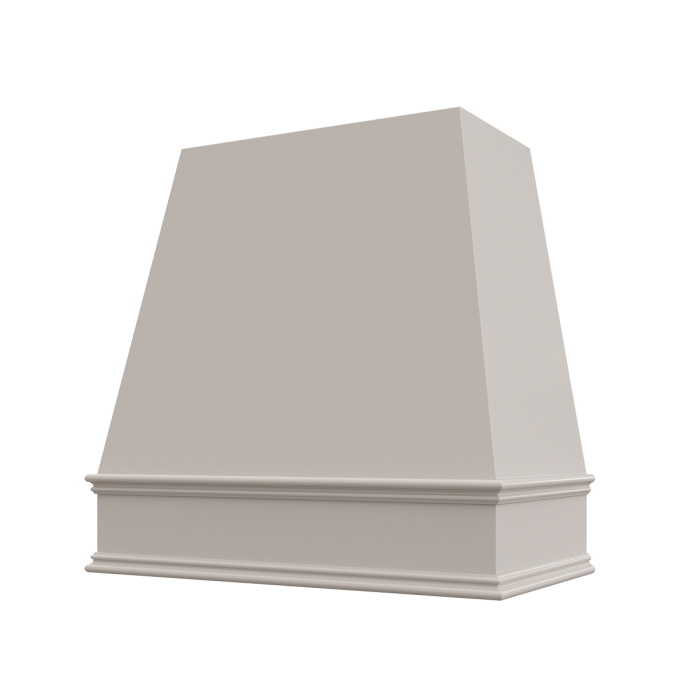 Classic style, tapered hood with molding. Features a plywood and Maple construction. The hood base front panel is 30" but at the widest point with the molding, the total width is 31-1/2". The side panel is 19-1/2" deep, and 20-1/4" deep with the molding. The top of the chimney is 26" wide and 14-1/2" deep and the chimney section is trimmable by 6" to make the total height 30", if needed. The height of the panel and molding section on bottom is 8-1/4". The hood has a two-piece construction for easy mounting and access to fan and ducting. Ships assembled.