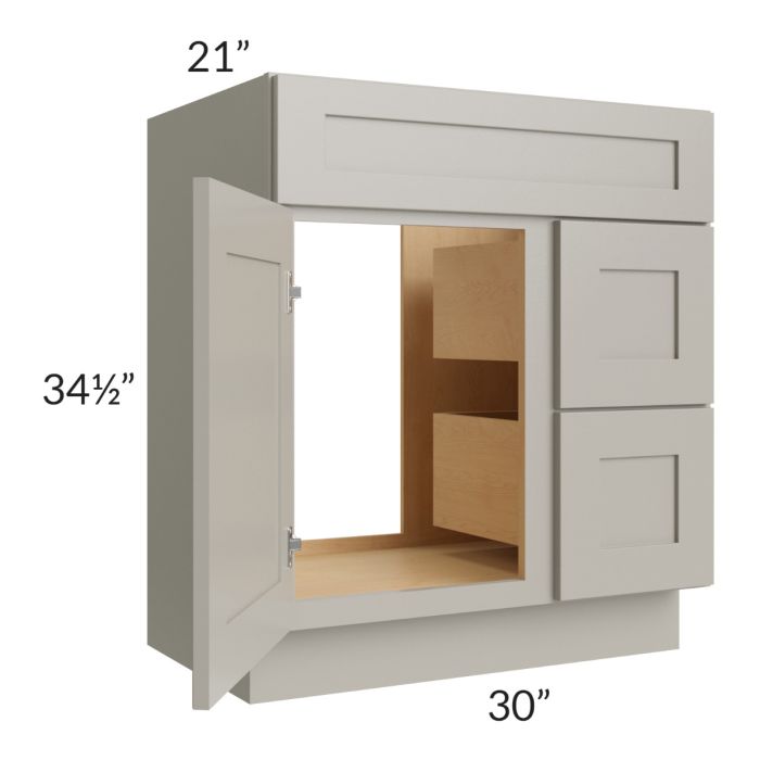 Stratton Light Grey Shaker 30" Vanity Sink Base Cabinet with Drawers on the Right