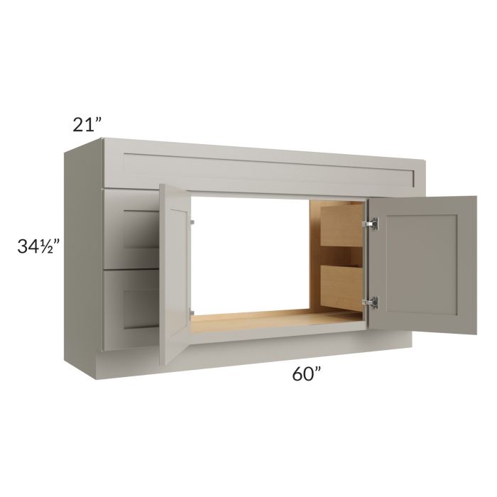 Stratton Light Grey Shaker 60" Vanity Sink Base Cabinet