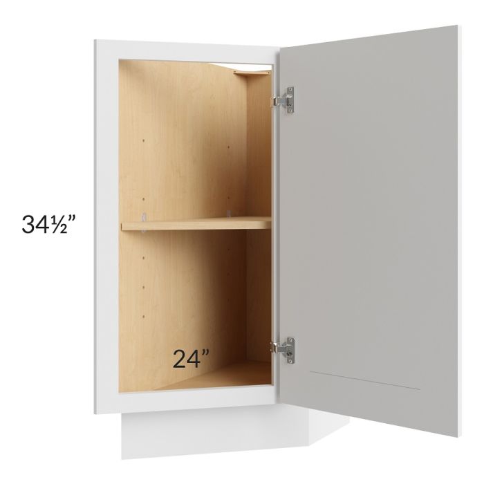 Full height door cabinet with 2 shelves that is meant to be used at the right end of a cabinet run. It will have a 24" deep side on the left which gets installed against the adjacent cabinet. The exposed side of the cabinet (on the right) will be 12" deep.