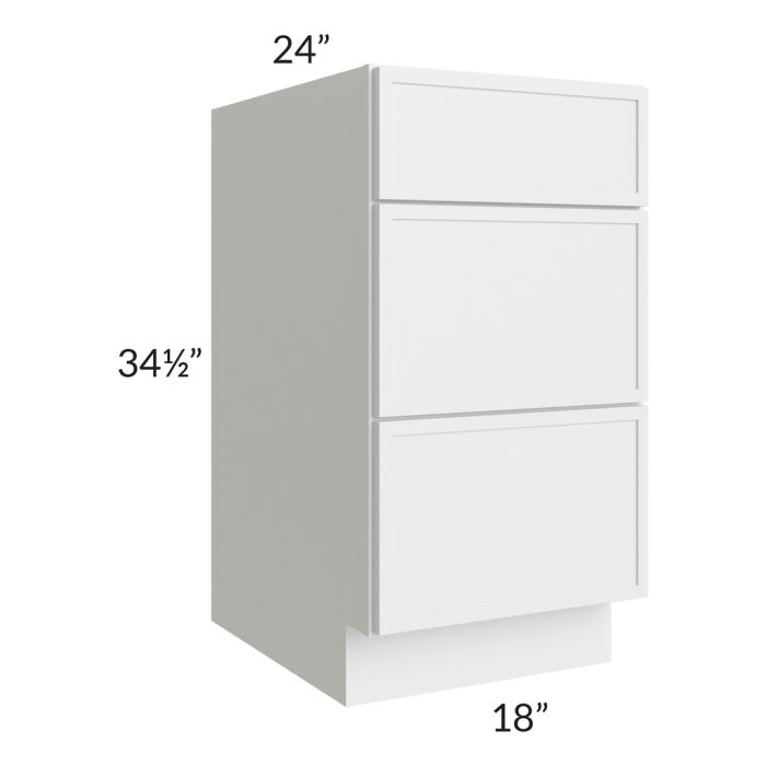3 drawer base cabinet that has (1) 6-1/2" drawer on top and (2) 10-3/4" drawers on bottom.