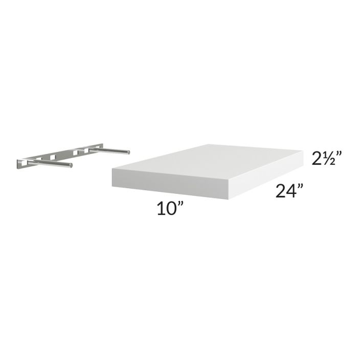 Floating shelf that should be mounted to a minimum of 2 studs for shelves under 50" wide and 3 studs for shelves more than 50" wide. Installation hardware and brackets will be included.