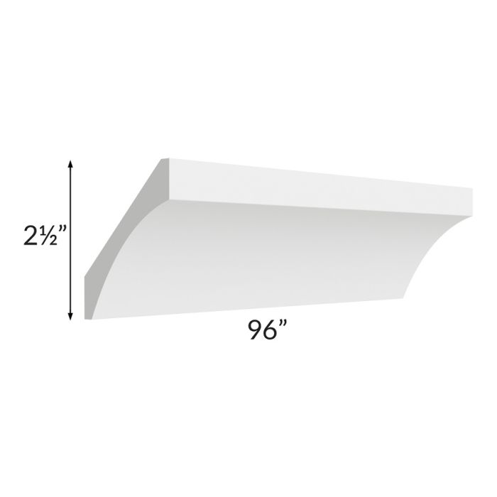 Curved crown molding that will have a height of 2-1/2" once installed and will stick out 2" from the cabinet.