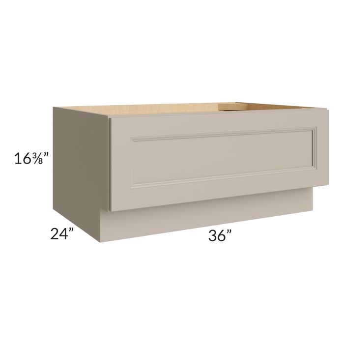 Drawer bench seat cabinet with an overall height of 16-3/8" and a drawer front height of 11-11/4". The cabinet will have the same constrution as other drawer base cabinets with an open top, and the interior drawer depth will be 19-5/8".