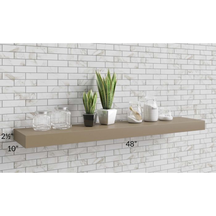 Floating shelf that will include the mounting brackets and hardware. The weight limit is 15 lbs/linear foot as long as the proper installation instructions are followed (instructions will be included with the shelf).