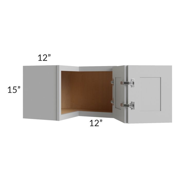 Square corner wall cabinet with no shelves. This cabinet will take up 24" of wall space going out from the corner on each wall. The door will not have a soft close hinge.