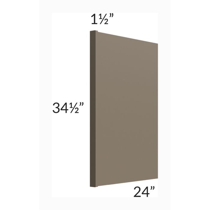 Appliance end panel with a 1-1/2" stile on the front, the stile is finished on front face and 2 long edges. Panel is 1/2" thick plywood and is finished on 2 sides.