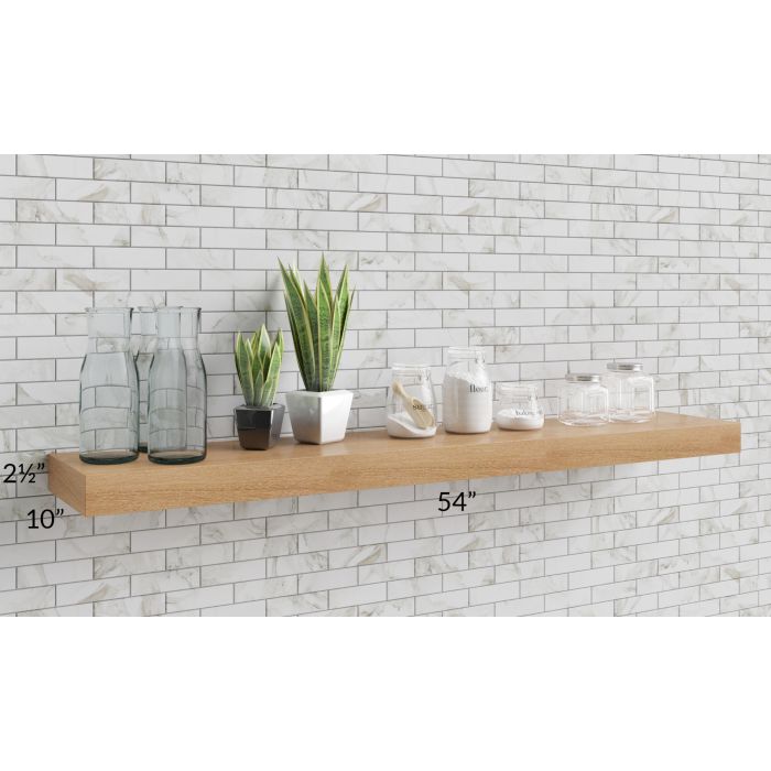 Floating shelf that will include the mounting brackets and hardware. The weight limit is 15 lbs/linear foot as long as the proper installation instructions are followed (instructions will be included with the shelf).