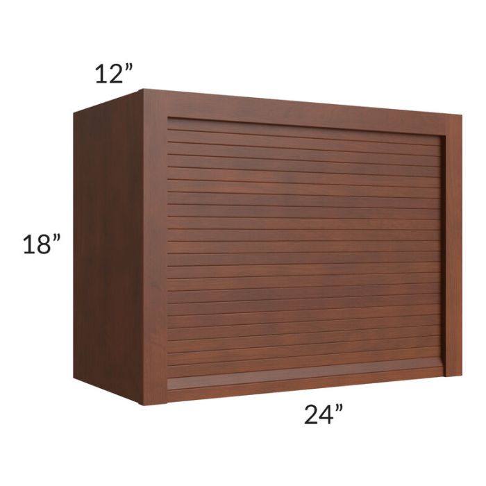 Appliance garage with a roll up, tambour door and is designed to fit under a 24" wide wall cabinet.