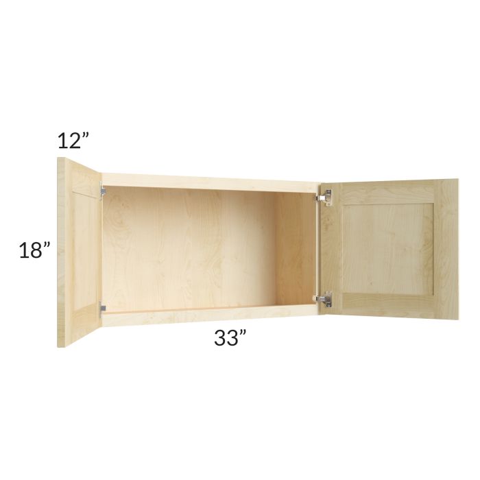 Description / Unfinished Shaker 33x18 Wall Cabinet