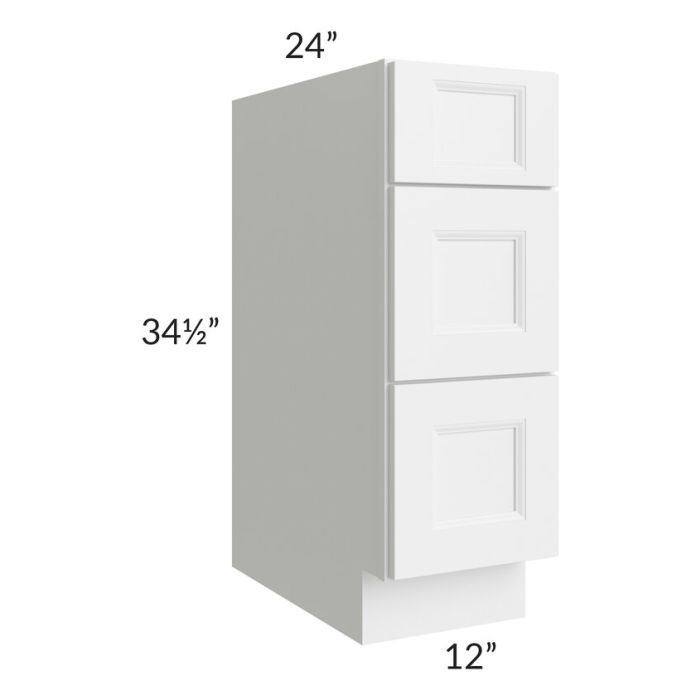 3 drawer base cabinet. Top drawer front is 6-3/4" high, middle and bottom drawer fronts are 11-1/4" high.