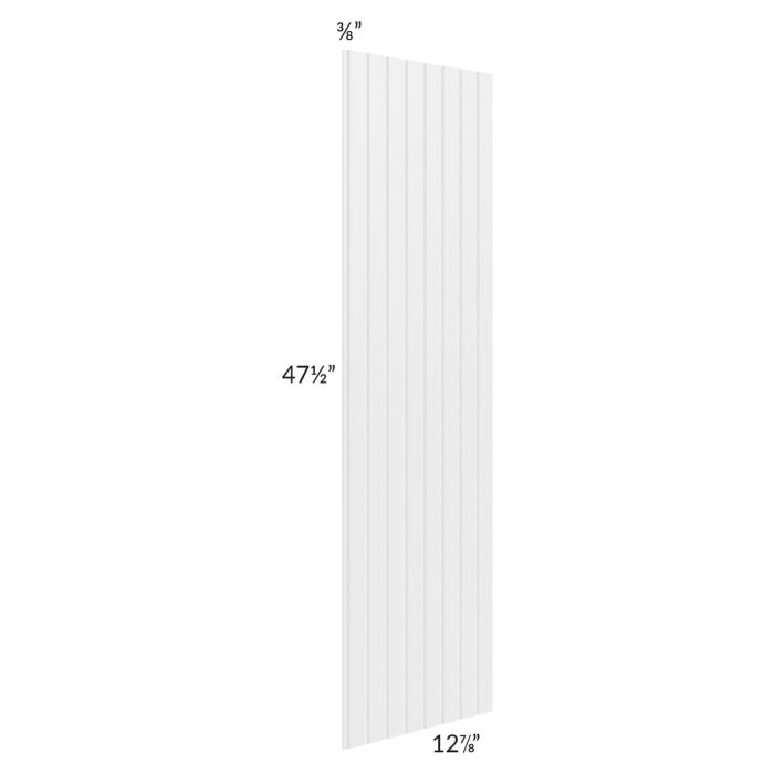 Beaded panel that has notched sections so multiple panels can be interlocked together. Beads are 1-1/2" wide, center-to-center. The exposed finished area of the panel is 11-7/8" wide but the total width of the panel is 12-7/8".