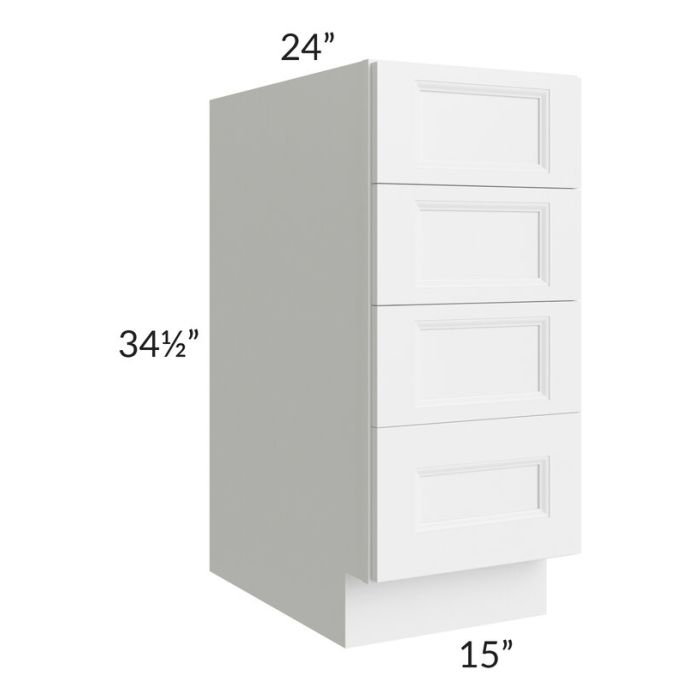4 drawer base cabinet. Top 3 drawer fronts are 6-3/4" high and the bottom drawer front is 9" high.