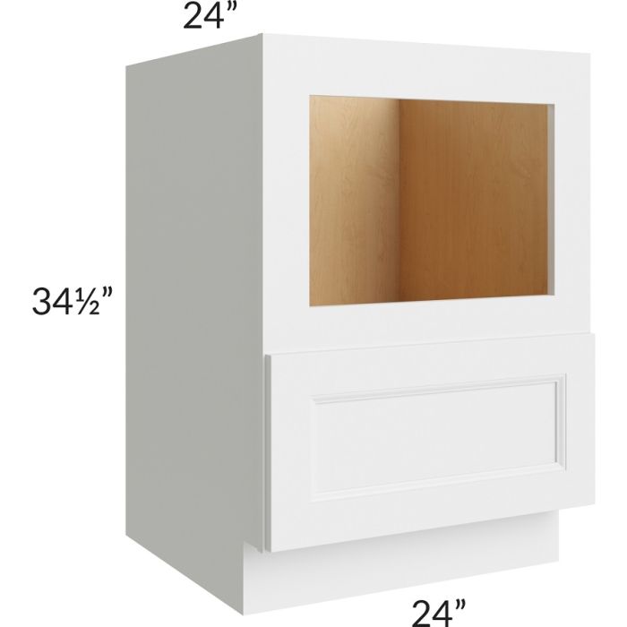Base microwave cabinet with (1) 9" high drawer on bottom. Opening will be 18"W x 12-1/2"H. It can be widened on site up to 22" W x 19"H, if needed. The space from the shelf to the top of the cabinet is 20".