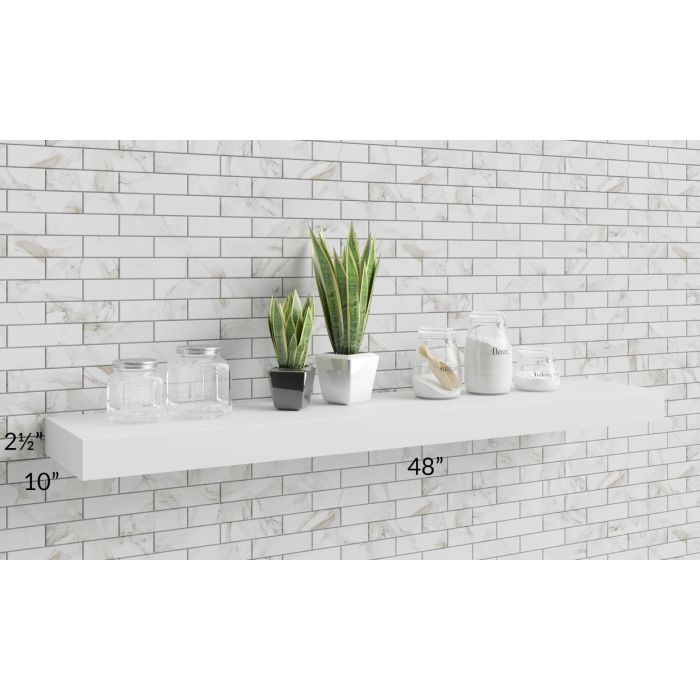 Floating shelf that will include the mounting brackets and hardware. The weight limit is 15 lbs/linear foot as long as the proper installation instructions are followed (instructions will be included with the shelf).