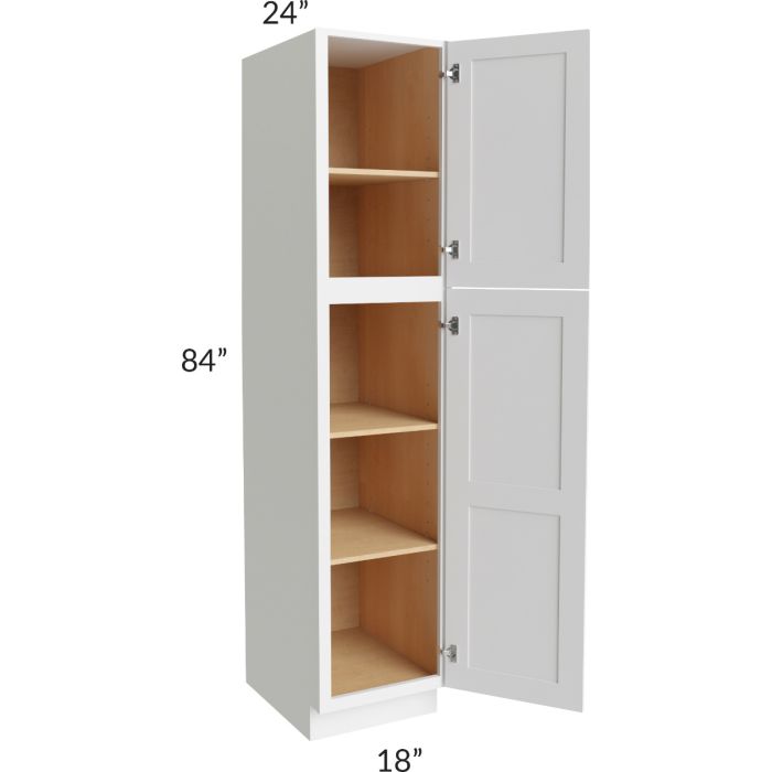 Wall pantry cabinet with 2 doors, 1 smaller door on top and 1 larger door on bottom. This pantry cabinet comes with is 1 fixed shelf and 3 adjustable shelves. Measurements are as follows: Top/Middle/Bottom door width is 17-9/16". Top door height is 29-5/16". Middle/Bottom door height is 49-1/4". There will be a horizontal decorative stile across the bottom pantry door.