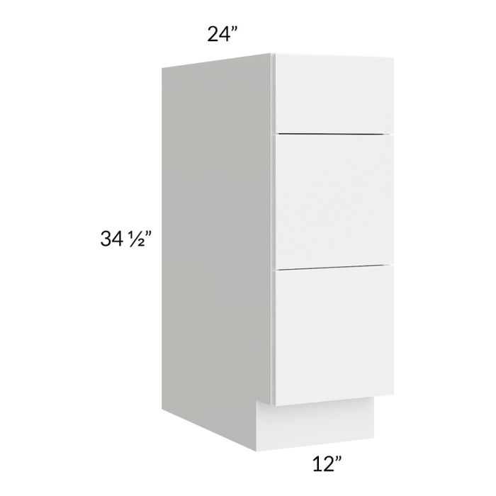 Description / Venetian White Gloss 12" 3-Drawer Base Cabinet