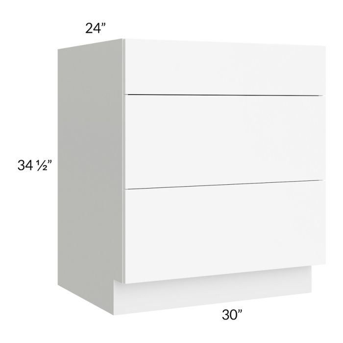 Venetian White Matte 30" 3-Drawer Base Cabinet