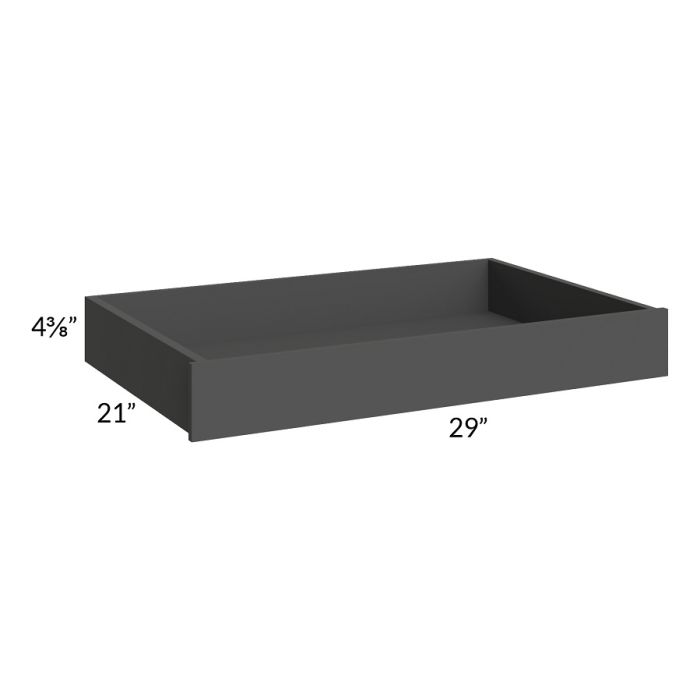 Low height roll out tray to be used in a 33" base cabinet (cannot be used with vanities, which have a shallower depth). There will be a front panel on the roll out that will be 1/2" wider than the drawer box.