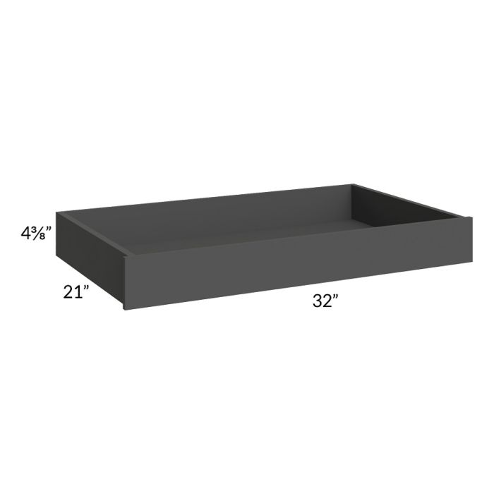 Low height roll out tray to be used in a 36" base cabinet (cannot be used with vanities, which have a shallower depth). There will be a front panel on the roll out that will be 1/2" wider than the drawer box.