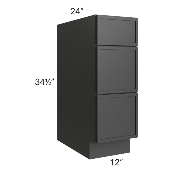 3 drawer base cabinet. Top drawer front is 6-3/4" high, middle and bottom drawer fronts are 11-1/4" high.