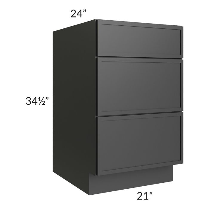3 drawer base cabinet. Top drawer front is 6-3/4" high, middle and bottom drawer fronts are 11-1/4" high.