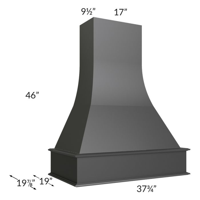 Artisan style wood hood that comes with a stainless steel liner. The chimney height can be trimmed up to 12" on site, if needed. Blower is not included and would need to be purchased separately. The chimney depth is 9-1/2" and the width is 17".