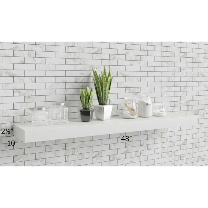 Floating shelf that will include the mounting brackets and hardware. The weight limit is 15 lbs/linear foot as long as the proper installation instructions are followed (instructions will be included with the shelf).