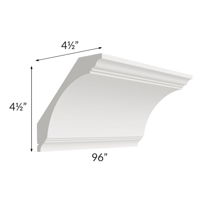 Large cove crown molding. When installed, it will be 4-1/2" high and will stick out from the cabinet 4-1/2".