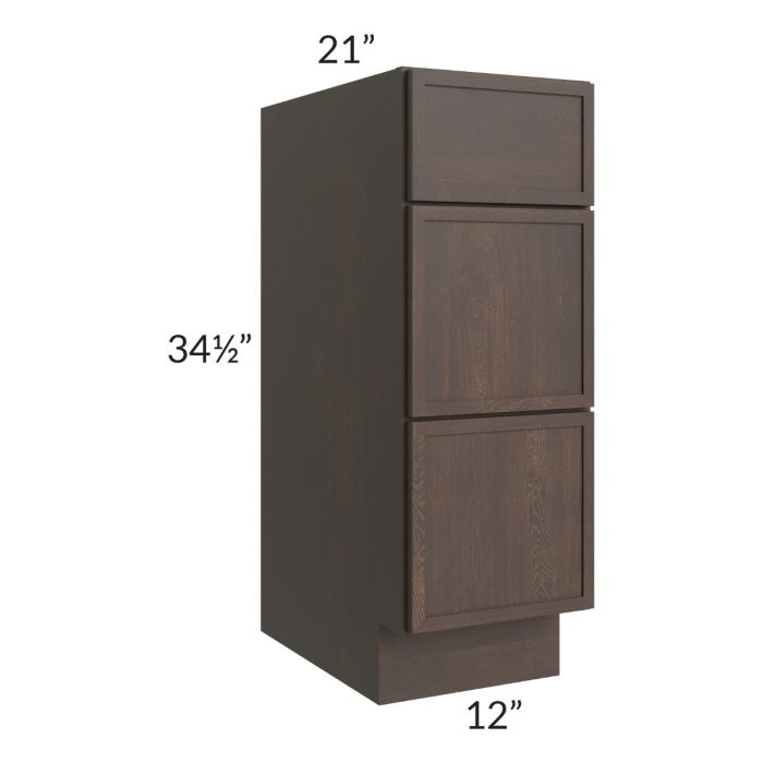 Description / Vienna Kona Brown 12" Vanity 3-Drawer Base Cabinet
