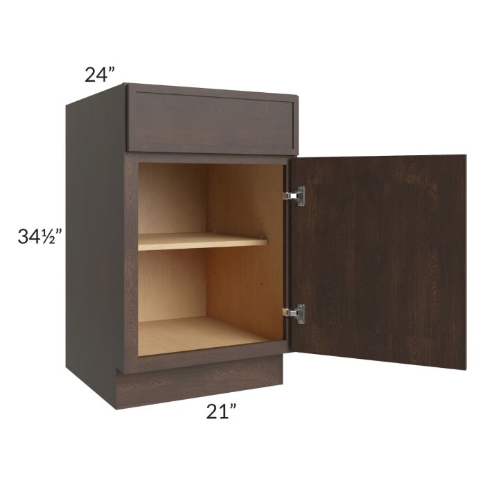 1 door base cabinet with 1 three quarter depth adjustable shelf and 1 drawer.