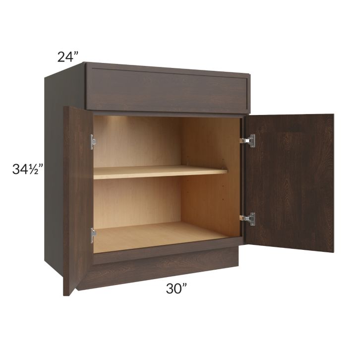 2 door base cabinet with 1 three quarter depth adjustable shelf and 1 drawer.