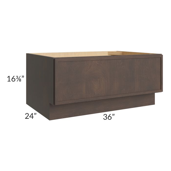 Drawer bench seat cabinet with an overall height of 16-3/8" and a drawer front height of 11-11/4". The cabinet will have the same constrution as other drawer base cabinets with an open top, and the interior drawer depth will be 19-5/8".