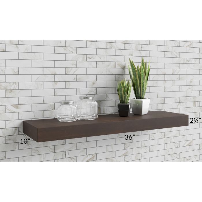 Floating shelf that will include the mounting brackets and hardware. The weight limit is 15 lbs/linear foot as long as the proper installation instructions are followed (instructions will be included with the shelf).