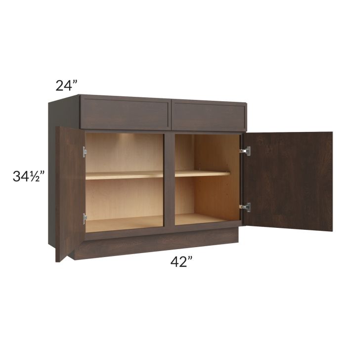 2 door base cabinet with 1 three quarter depth adjustable shelf and 2 drawers. This cabinet will have a 2-5/8" center stile.