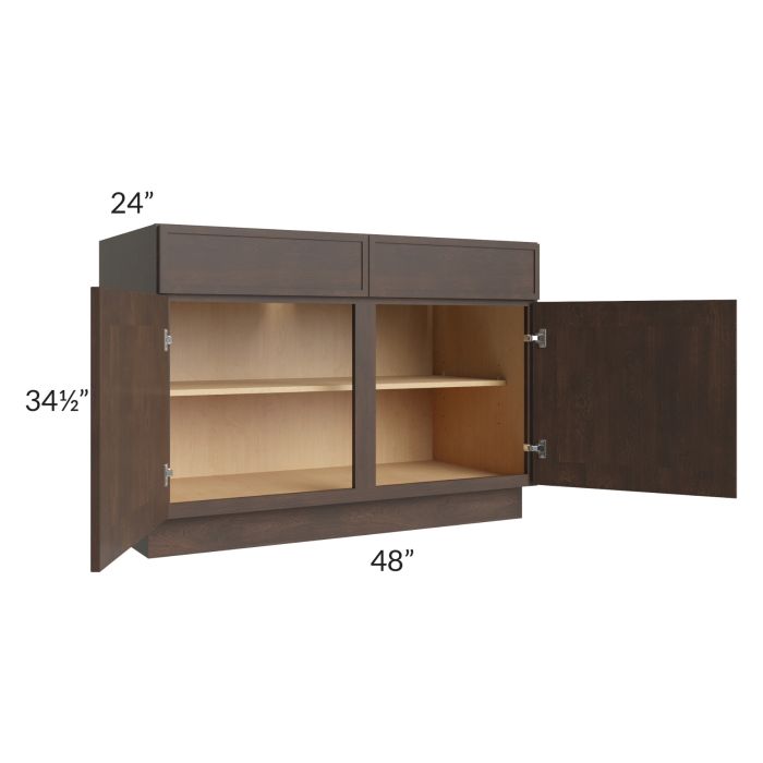 2 door base cabinet with 1 three quarter depth adjustable shelf and 2 drawers. This cabinet will have a 2-5/8" center stile.
