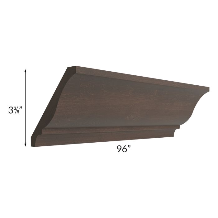 Large crown molding, when installed, it will be 3-3/8" high and will stick out from the cabinet 3".